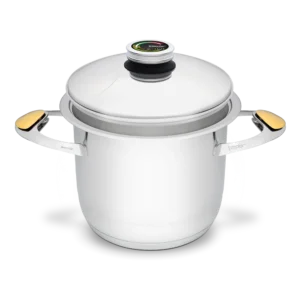 Данное устройство позволяет надлежащим образом приготовить здоровую пищу при правильной температуре и контролировать процесс приготовления не поднимания крышки. При мытье в посудомоечной машине термоконтроллер с крышки необходимо откручивать.
